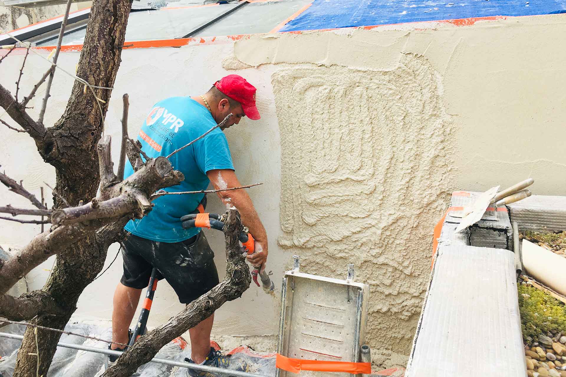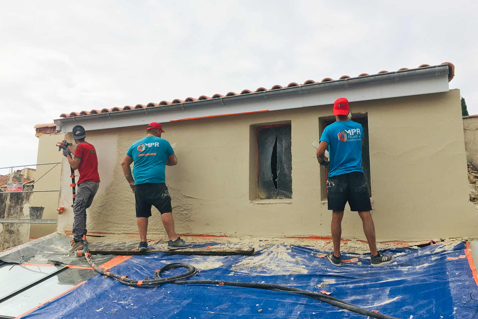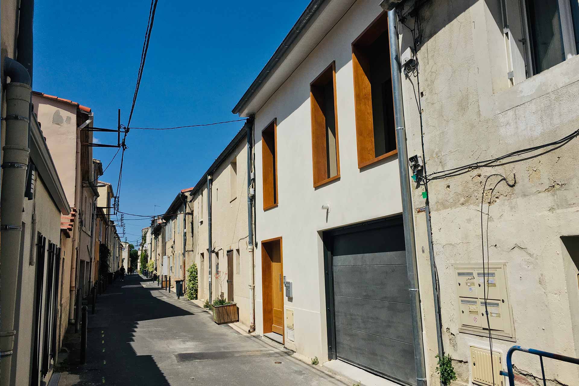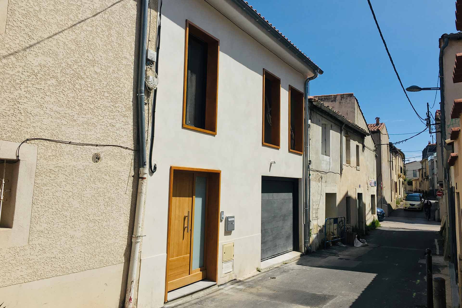 Dans le quartier Boutonnet de Montpellier, cette maison a été restructurée par un architecte pour gagner en surface et fonctionnalité. Nous y avons réalisé 4 missions. Des enduits monocouche sur les façades, surélévation (couleur G20, blanc cassé) et dans la loggia (couleur T30, terre d’argile). Une étanchéité de terrasse avec dalles sur plots pour la petite loggia. Des débords de toiture en PVC. Et de multiples ouvrages de zinguerie (gouttières, descentes d’eau pluviales, habillage zinc des panneaux sandwich en rive, solins, entablements…).