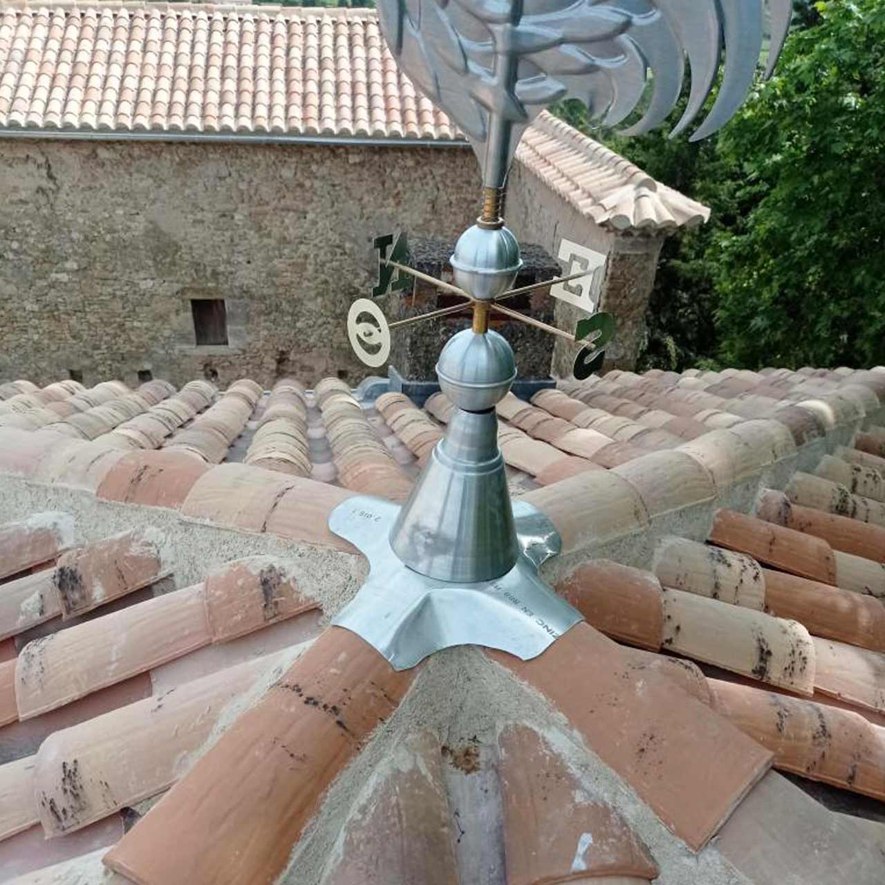 Pour ce grand chantier de rénovation d’un ancien mas viticole de la vallée du Rhône, MPR façade a été sollicitée pour de multiples réalisations en zinc dans le cadre de la réfection générale des toitures du domaine. Outre la rénovation de tout le réseau de gouttières et de descentes d’eau pluviale avec coudes, des ouvrages d’une plus haute technicité tels que des solins, des noues, un chéneau encaissé, un abergement de souche de cheminée et une girouette ont été demandés à notre zingueur qui a su dépasser toutes les contraintes imposées pour parfaitement les concevoir et les mettre en œuvre.